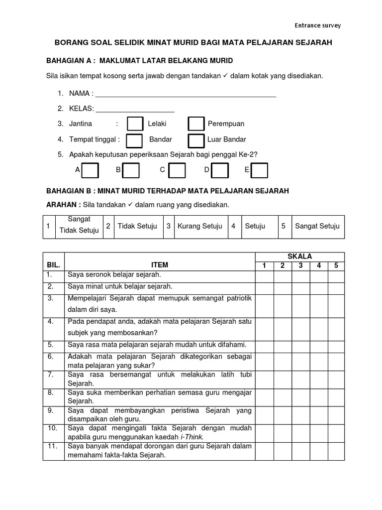 Borang Soal Selidik Matapelajaran Sejarah from reader018.staticloud.net Contoh borang soal selidik geografi pt3 2018. Borang soal selidik geografi pt3 2017. Respon pelajar terhadap pengajaran guru bahagian a: 2014 lhdn submission date hairstylegalleries.com via www.hairstylegalleries.com. Pengaruh guru dalam pencapaian mata. Skema jawapan trial sains komputer, skema jawapan upsr 2016, skema jawapan bm spm 2014, skema jawapan sejarah kertas 3, skema jawapan upsr s. Borang soal selidik via www.slideshare.net. Perkongsian ini adalah selaras apa yang dimahukan dan mengikut format yang ditetapkan oleh kpm.