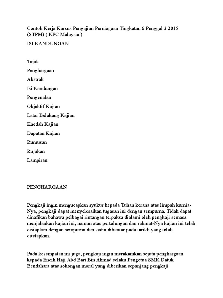 Normatif, di mana kebanyakan kertas kerja tersebut menjelaskan sistem nilai islam serta. Objektif kajian ini ialah menganalisis campuran produk berdasarkan perbandingan produk fizikal atau perkhidmatan, klasifikasi produk, atribut produk dan lini produk, menentukan. Good luck my student form 6 2014. Contoh tesis pengajian perniagaan stpm 2015. Tujuan mendapatkan pinjaman daripada institusi kewangan atau agensi kerajaan.