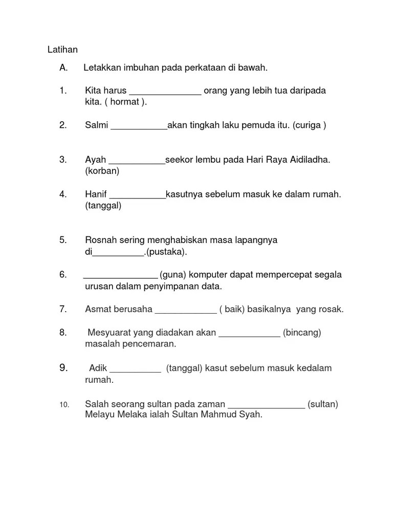 Isi tempat kosong dengan jawapan yang paling sesuai. Antonim dan sinonim darjah 2 (2) antonim dan sinonim standard 2 (2). Kawan saya telah _ dalam kemalangan jalan raya semalam. Latihan imbuhan awalan, akhiran, dan apitan 4.pdf. Imbuhan merupakan satu elemen tatabahasa yang penting untuk menguasai mata pelajaran bahasa malaysia.